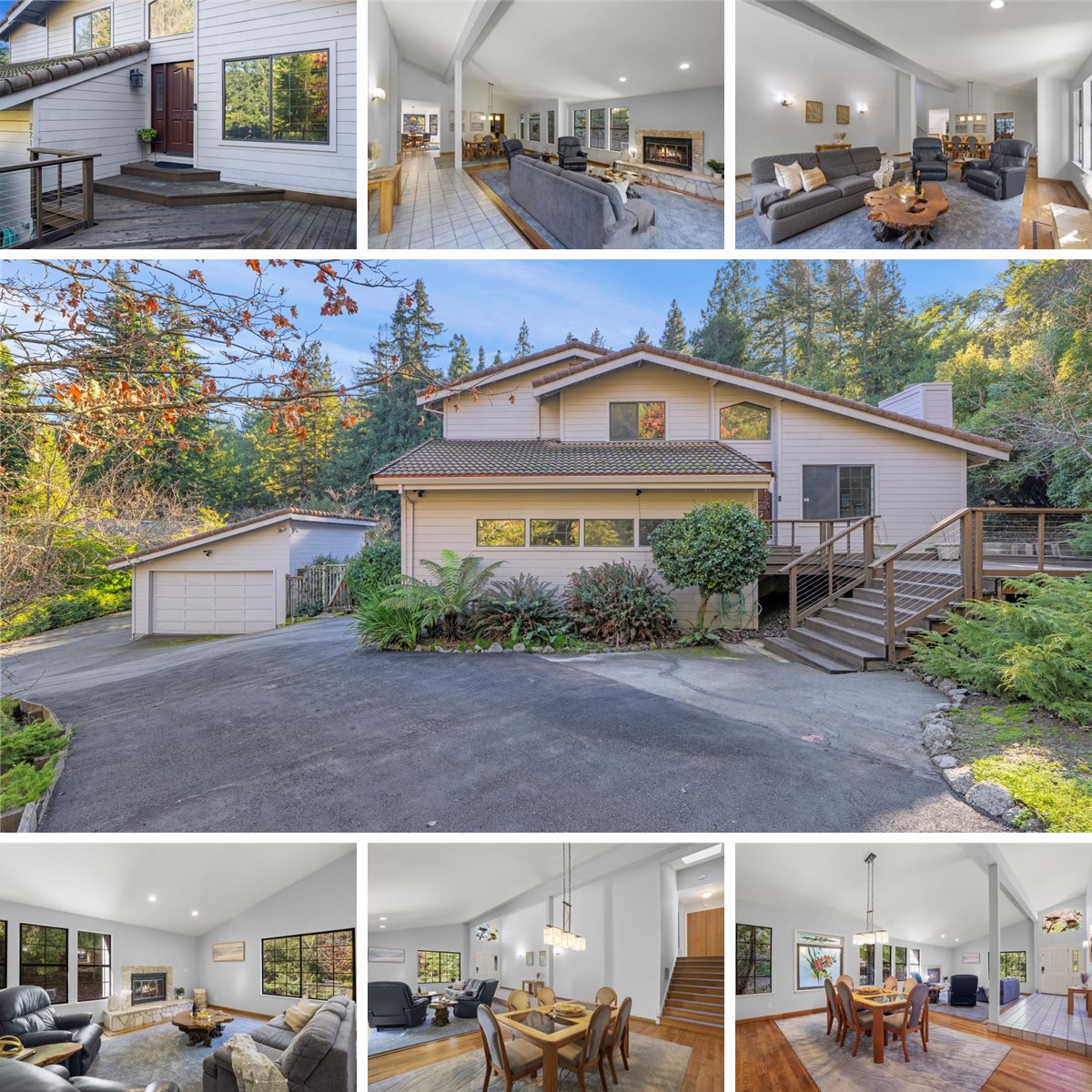 Stunning mountain home set in a prime location just minutes from downtown Los Gatos. The open, spacious floor plan features a luxurious living room with soaring ceilings and a fireplace, opening seamlessly into the formal dining area, perfect for entertaining. The gourmet kitchen is appointed with double ovens, a gas cooktop, and a large center island. The family room includes a second fireplace and direct access to the rear yard. The main level is completed by a generous bedroom and an updated full bathroom with a walk-in shower. Upstairs, the primary retreat offers a large ensuite bath with a soaking tub with jets and a separate shower. Two additional spacious bedrooms complete the upper level. The grounds include a sparkling pool with a waterfall, an outdoor kitchen, and a barn for the horse enthusiast. An attached 2-car garage plus a detached 2-car garage/workshop provide ample parking and storage. Served by top-rated schools: Loma Prieta, C.T. English, and Los Gatos High.